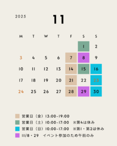 日曜日:10:00〜17:00(第1・第2はお休み)